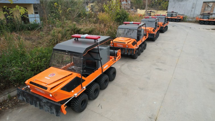 全地形:上山下水,爬坡过坎,泥潭沼泽,8×8低压轮胎适合所有救援场景。