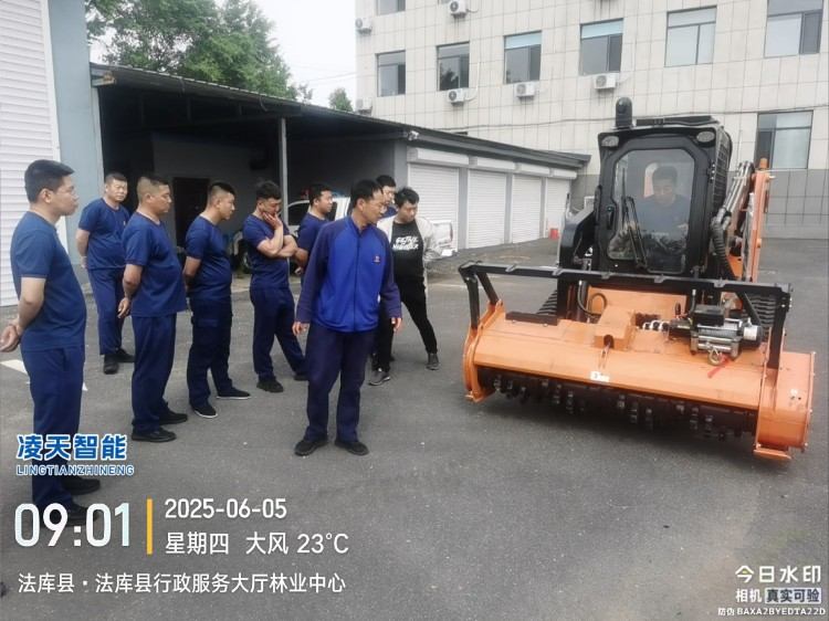 森林隔离带开辟车是由隔离带开辟机模块、大型钝刀式切削模块、重型林木抓斗、铲斗、快换机构、履带式行走机构、臂架举升装置、驾驶室、电气液压系统和无线遥控器组成。设备应采用双三角形履带式行走机构,具备建造防火隔离带的能力,可粉碎树 木、灌木、草等各种可燃性植物,能在茂密的树林、灌木林、草原中迅速开辟防火隔离带。可粉碎的树木直径≥ 250mm,连续粉碎时可粉碎的树木直径≥80mm,可粉碎的树木、灌木和草的高度没有限制。在山地林区开辟防火隔离带、维护防火通道、开辟临时救援通道、建立安全岛、辅助清理火场、开设生土隔离带等应急救援任务。