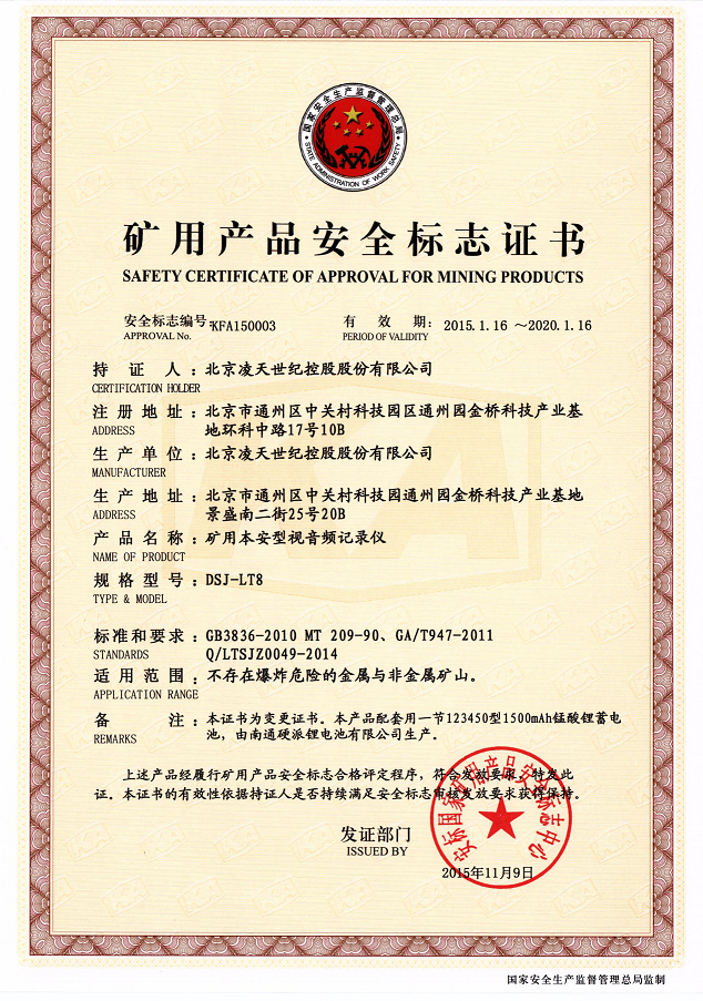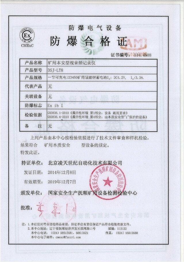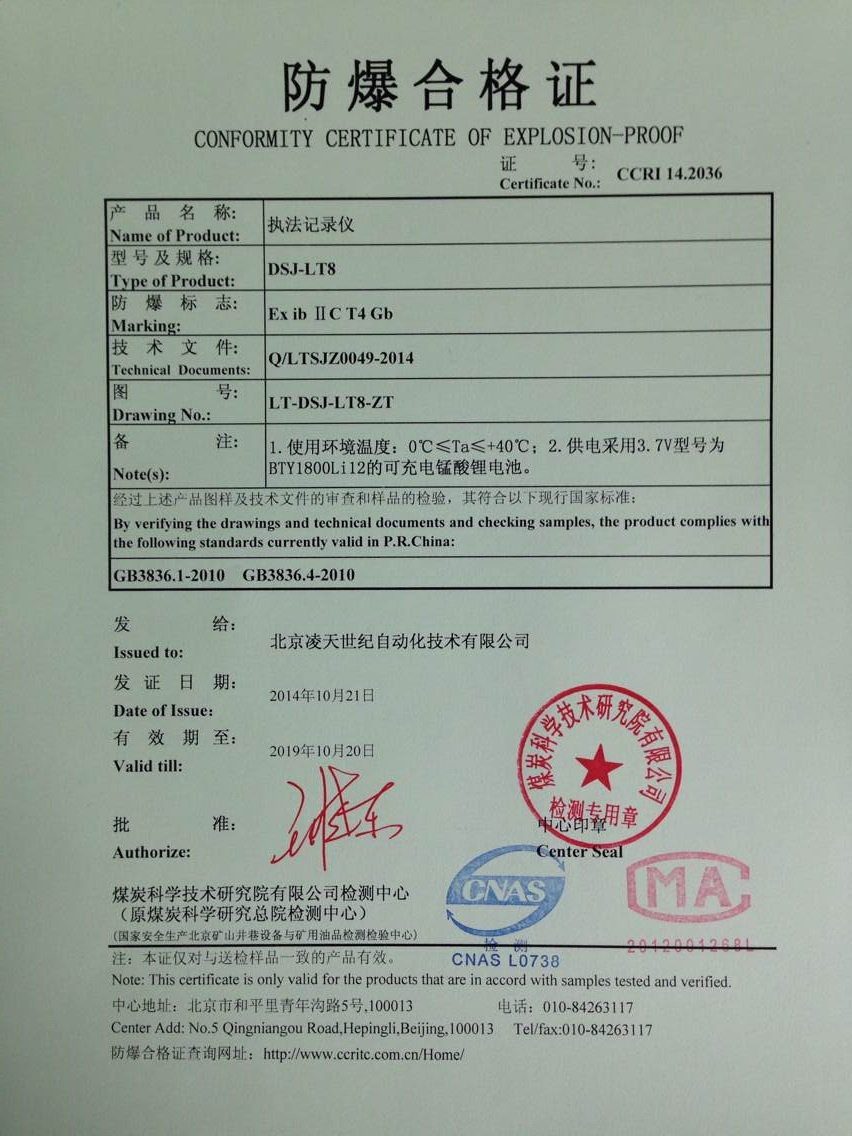 北京凌天防爆执法记录仪取得3c强制性认证、化工防爆、煤矿防爆、MA