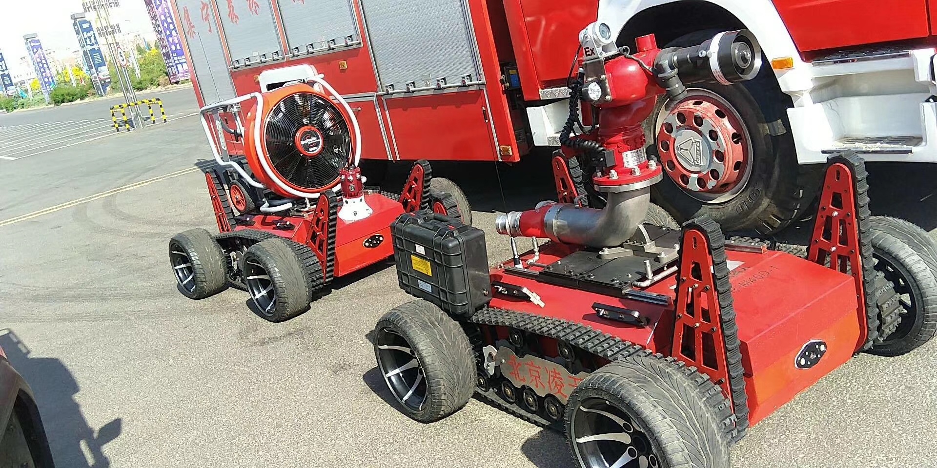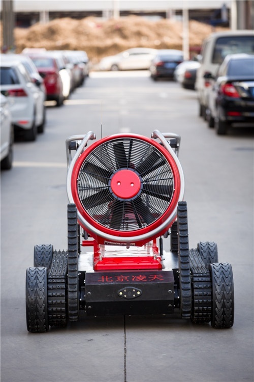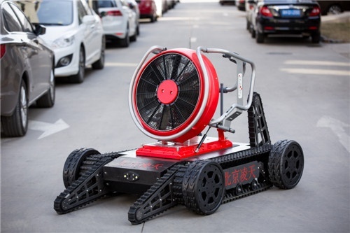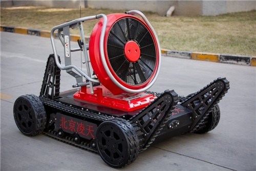 消防排烟侦察机器人采用履带+摆臂+轮式的底盘设计,装配大功率水驱动排烟机。水雾喷射装置,形成雾化效果。消防排烟机器人在救援当中可深入灾害现场执行排烟降尘、冷却、送风、降低热辐射等多种作业。