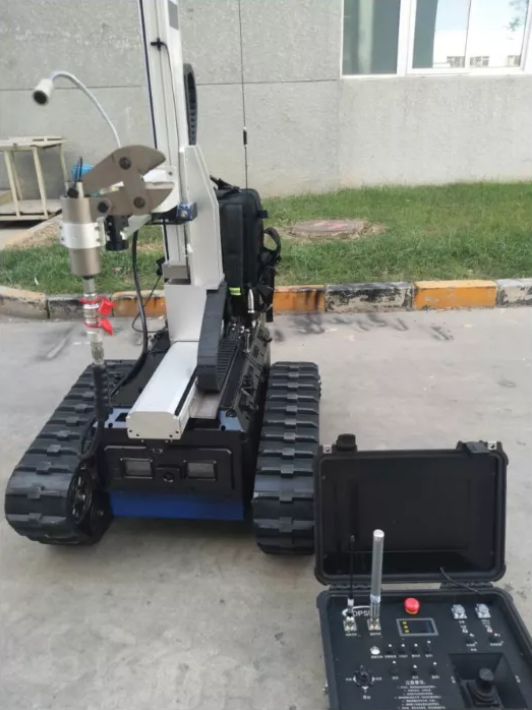 破拆机器人,也可用于远程遥控侦察人难以达到的地形的一种机器人。机器人配备十字滑台,灵活调动工具的工作位置,可加载手持式切割机,还可以加载独立电动液压工具其包括:微型开门器、微型扩张器、微型剪切器之间可以灵活更换,底盘采用履带结构,能适应各种地形快速作战部署。