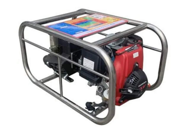 不锈钢架,便于携行。泵轴水平布置,减少震动 水泵泵体为柱塞液压隔膜泵。允许砂石颗粒通过,对水质要求低,对发动机功率损耗小。 泵组可在横向、纵向倾斜达到25°时正常工作。 水带直径40mm,爆破压力18MPa,表层涤纶长丝,内衬进口橡胶,高压森林接口连接。 水泵配备的动力装置为强制风冷四冲程汽油机。