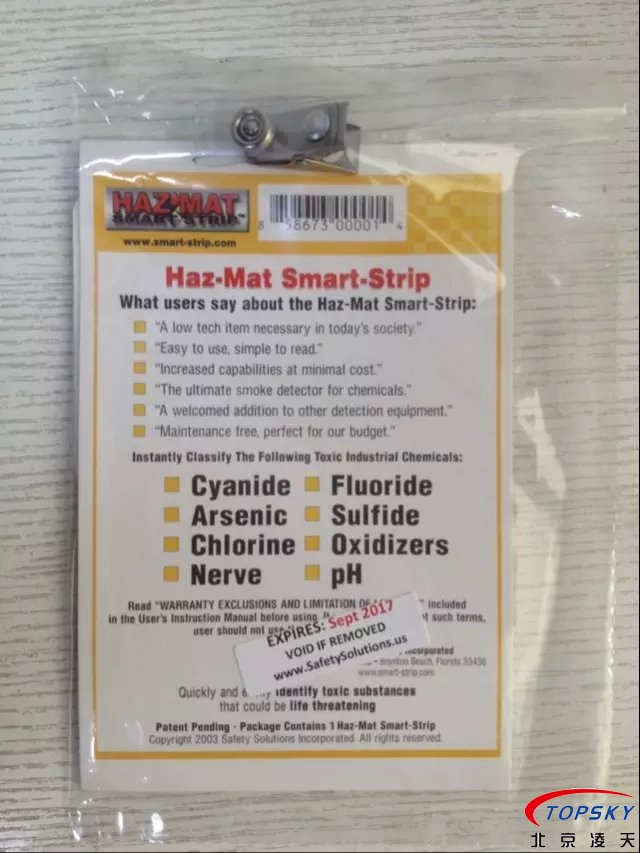 l 经特殊设计的指示贴片可检测到多达八种化学成分包括氯气,氟化物,神经毒气,氧化剂,砷,硫化氢,氰化物,酸碱度;