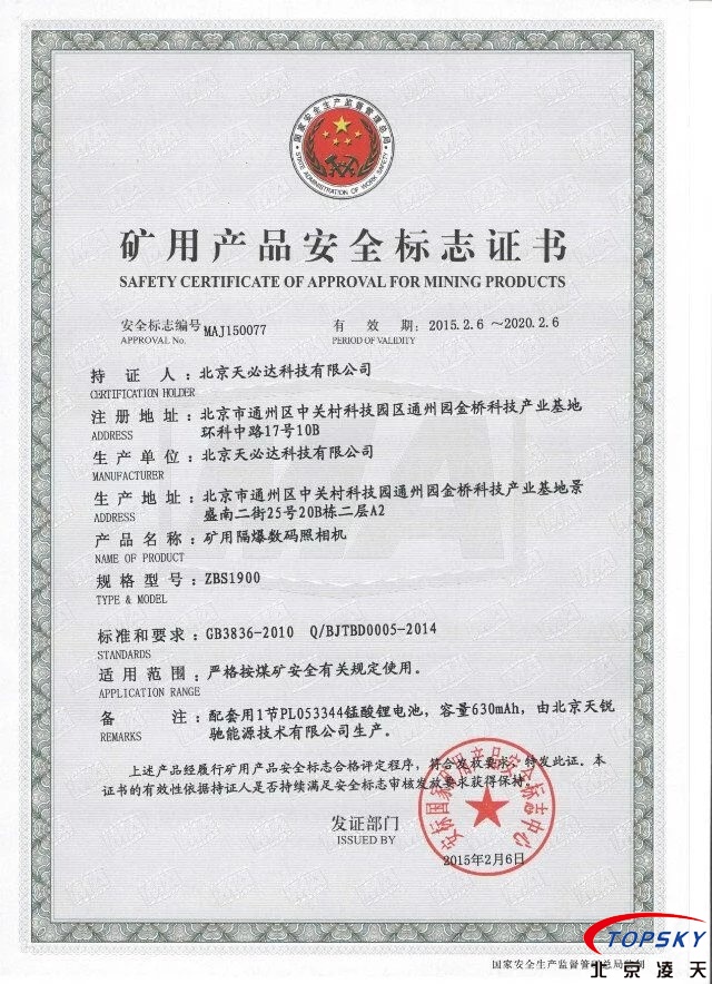 同时具备化工防爆、煤矿防爆、煤安认证等权威认证,保证设备的安全性.