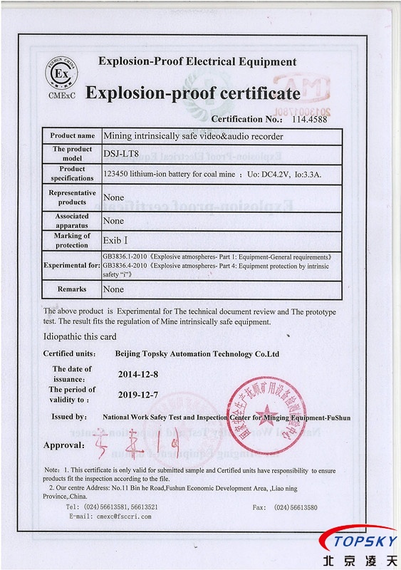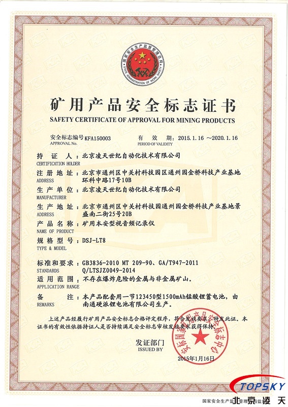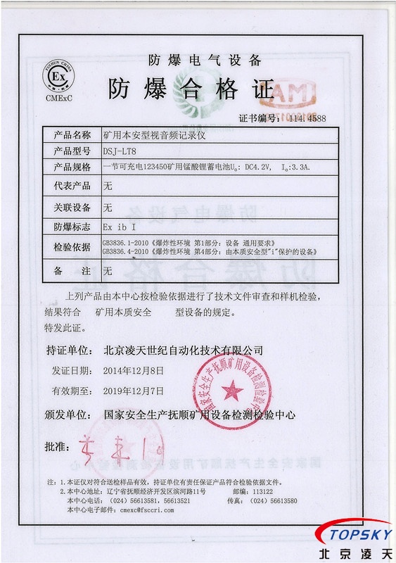 DSJ-LT8防爆执法记录仪取得煤安认证