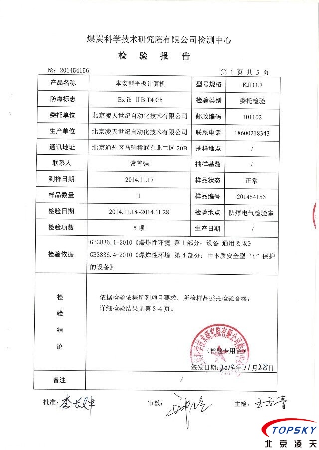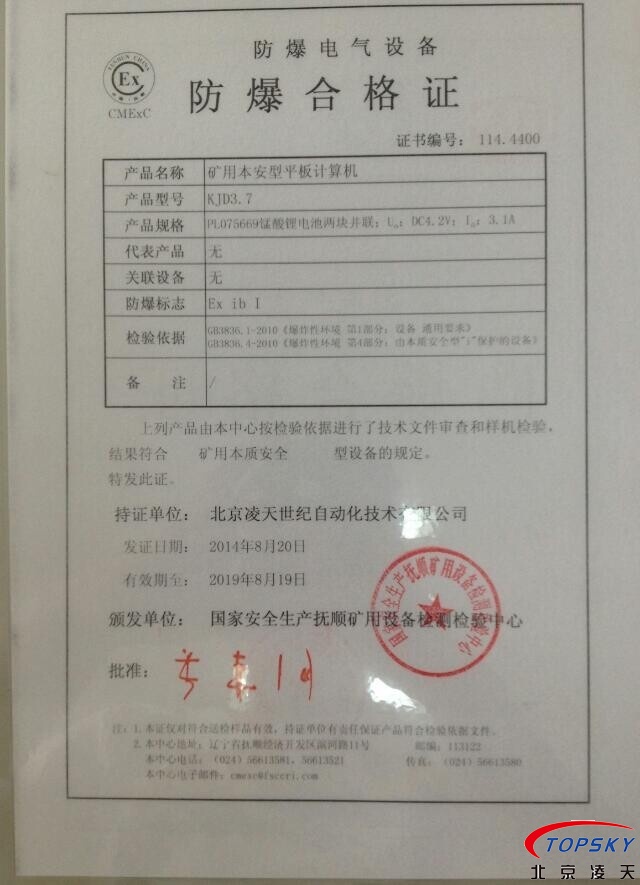 【云安通】KJD3.7防爆移动执法终端(本安平板计算机) 技术完成单位:北京凌天世纪自动化技术有限公司 |