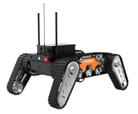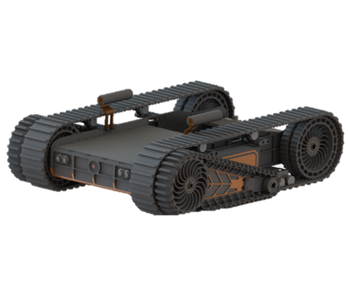 1300底盘主要是用来搭载其它智能装备,如机械臂、云台、消防炮等,底盘采用履带结构,采用前后4摆臂+履带的结构形式,履带和摆臂适合复杂地形,可以提高越障性能。可工作于恶劣环境当中,能适应各种地形快速作战部署。