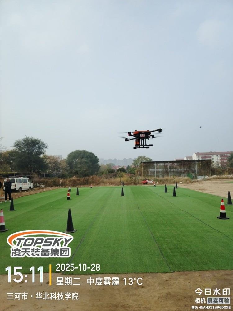 本无人机为北京凌天智能装备集团研发的多用途陆空两栖无人机平台,采用四旋翼机身设计,载重大,续航长,并且机体折叠标准化负载接口、集成航电系统,还支持选配雷达避障系统。同时,该无人机具备陆空两栖功能,可以在地面行驶,行走系统可快拆。满足消防灭火、应急教援、物资运输、环境监测等不同场是的行业应用。