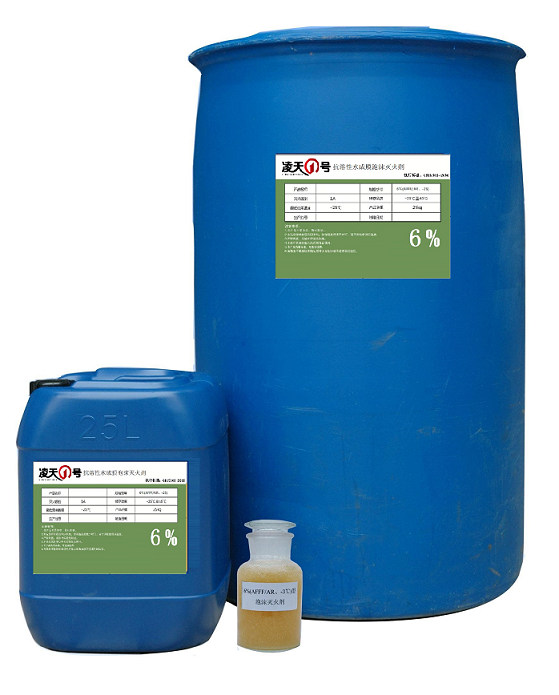 该灭火剂的各项性能指标符合GB15308-2006 《水成膜泡沫灭火剂》的要求。按与水体积混合比分为3%AFFF (3: 97)和6%AFFF(6:94)两种。该灭火剂通过比例混合经泡沫产生装置可以均匀细腻的泡沫。该灭火剂是目前低倍数泡沫灭火剂中灭火效率最高、灭火速度最快的一-种灭火剂,它具有多种使用形式,可以适用于各种低倍数泡沫产生系统和泡沫灭火器中使用,经国家权威部门检测对人体无毒无刺激,腐蚀性低,该灭火剂不但彻底解决了环境污染问题而且储存期长等特点。