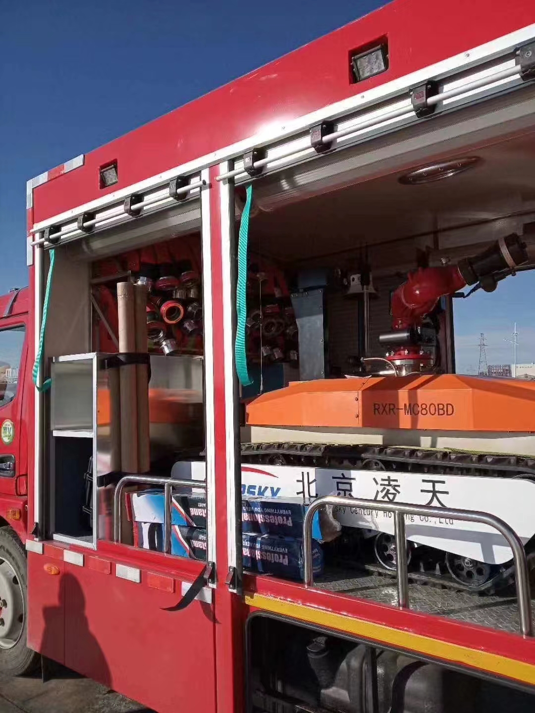 RXR-M80LGD消防灭火机器人采用锂电池电源作为动力电源,救援人员可远距离操控。本产品可适用于各种大型危险化学品、高层楼宇建筑、大跨度商业建筑、工厂、商贸企业、矿山、隧道、地铁等事故救援,主要替代消防员在执行危险救援任务。本产品具备灭火、音视频侦察、有毒有害气体侦察、灾区环境侦察功能;机器人采用前后4摆臂+履带+4轮胎轮履底盘结构,轮履合一的设计可以将速度和越障能力都能得到保证;轮式结构可以大幅度提高机器人的行驶速度,保证了机器人的快速部署、快速投入救援;