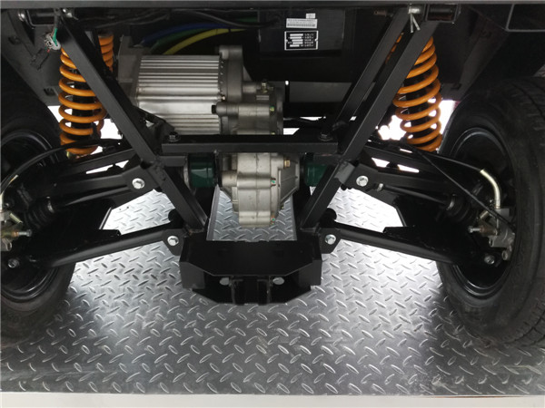 | 轴距1620mm最小离地间隙260mm整车整备质量390kg最大技术质量690kg最高车速50km/h制动器型式(前/后)盘式盘式驱动方式后轮驱动悬挂方式前/后前麦弗逊、后双臂传动方式轴传动后货箱尺寸711x1210x337 35° |