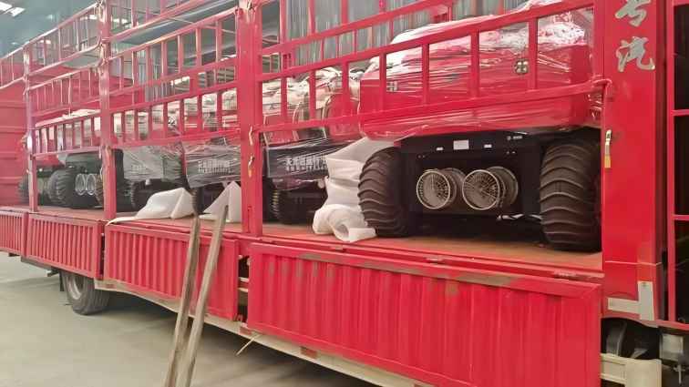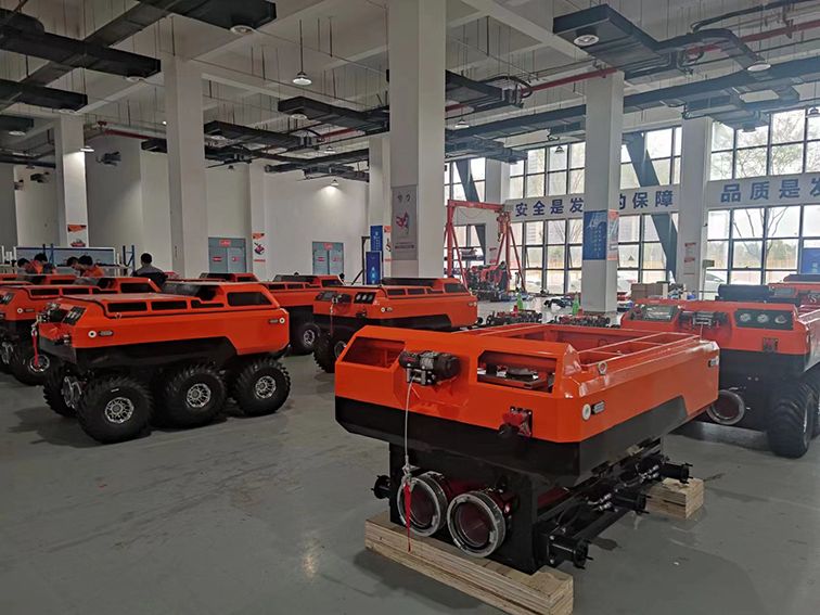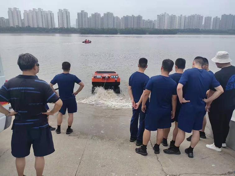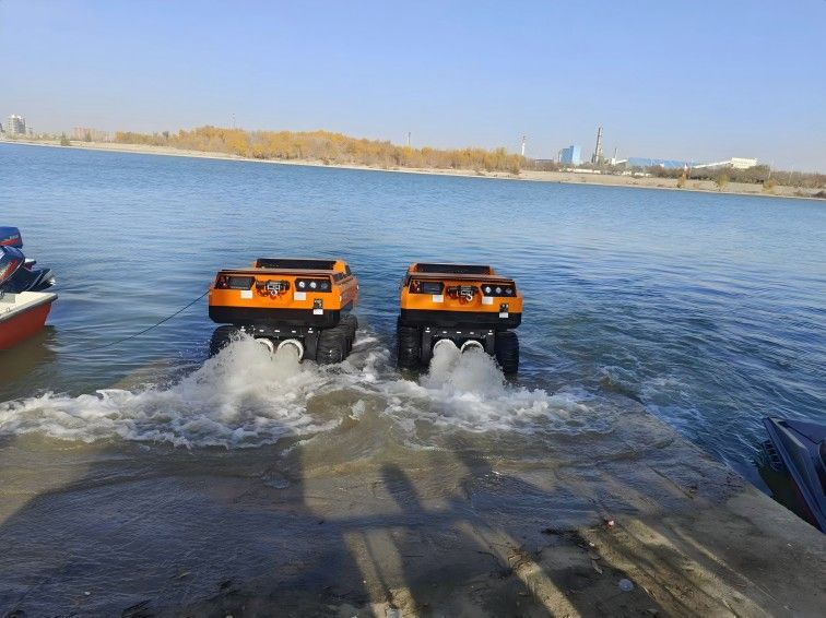 水陆两栖 采用6×6轮式,液压驱动,水陆两栖,可全地形行驶。可在水上漂浮行进,适合多种救援场景。