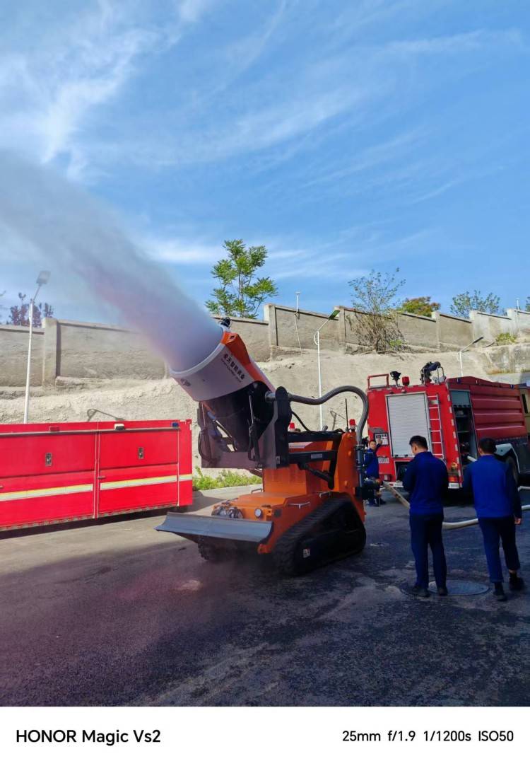 消防排烟灭火机器人作为特种机器人的一种,采用柴油发动机作为动力源,使用无线遥控的方式远距离操控消防灭火机器人。可使用于各种大型石油化工企业,隧道、地铁等不断增多的油品燃气、毒气泄漏爆炸、隧道、地铁坍塌等灾害隐患多发地,灭火机器人在抢险救援中发挥举足轻重的作用,主要替代消防员在危化火场或浓烟火灾现场救援的专用设备。本产品具备灭火、排烟、清障、音视频侦察功能。