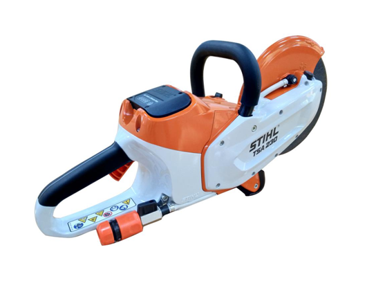 TSA电动无齿锯配置230mm切割片的锂电切割锯,室内、室外均可使用。最大切割深度高达70mm,带水管连接头、配合球形阀门,接水使用。带主轴锁,免维护传动皮带,重量只有3.9kg.