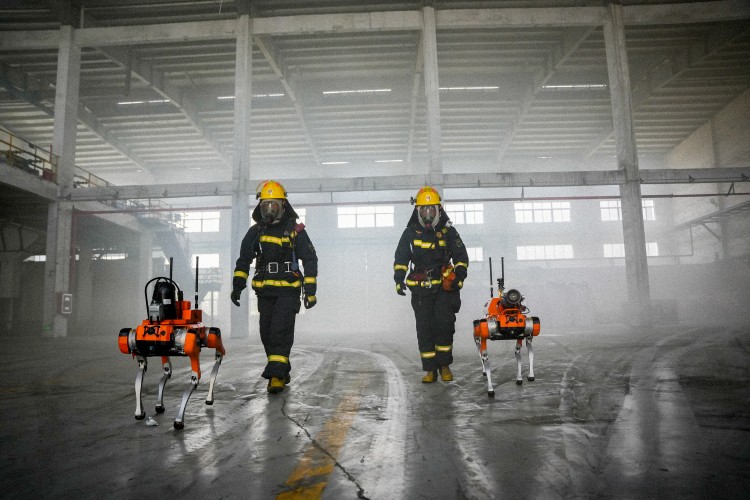 四足机器狗是一种结合仿生学与智能技术的特种装备,专为复杂、高危的场景设计,工作温度范围覆盖-20℃至55℃,具备IP67级防水防尘性能,可在浓烟、高温、有毒气体等极端环境中稳定运行。