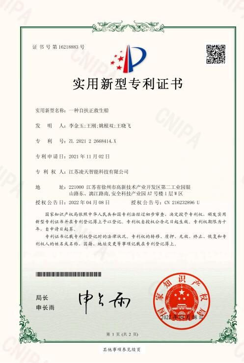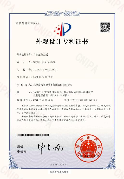 1. ★自扶正功能:将自扶正激流救生艇闲倾90°后手动释放,能自动恢复到正常状态,扶正后人员安全,扶正后不影响整艇的任何功能。